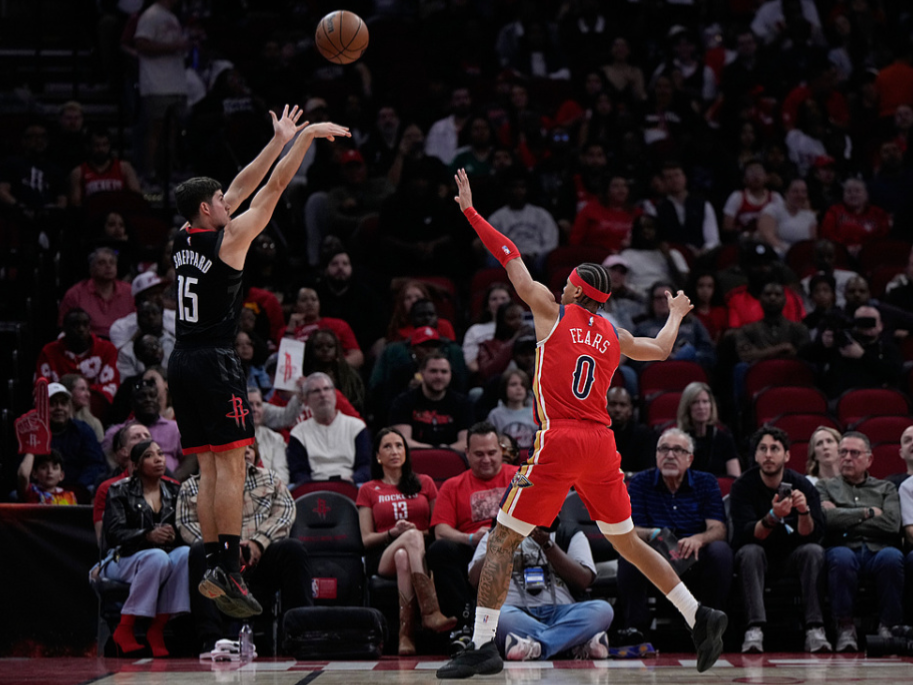 次节,谢泼德成为奇兵,连续三记三分球让火箭一度领先两位数,看上去,胜利的天平正在向休斯顿倾斜。