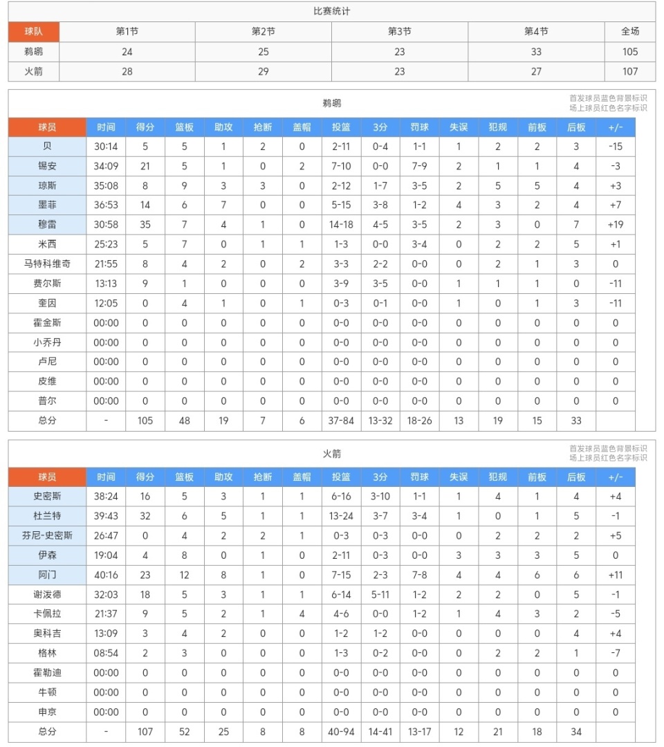 火箭107-105险胜鹈鹕,杜兰特爆砍32分,谁是最佳?数据一目了然!
