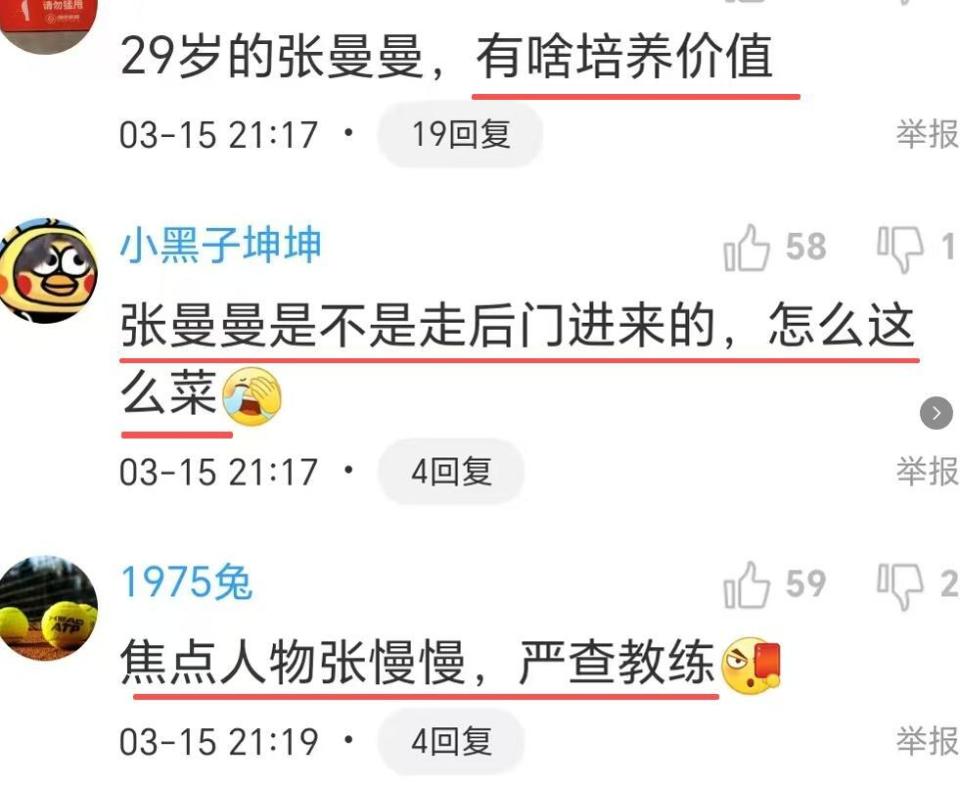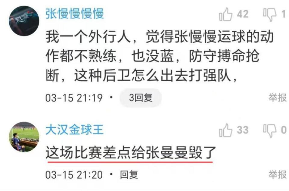 球迷说:“我一个外行人,觉得张慢慢运球的动作都不熟练,也没篮,防守搏命抢断,这种后卫怎么出去打强队?”,“这场比赛差点给张曼曼毁了”。