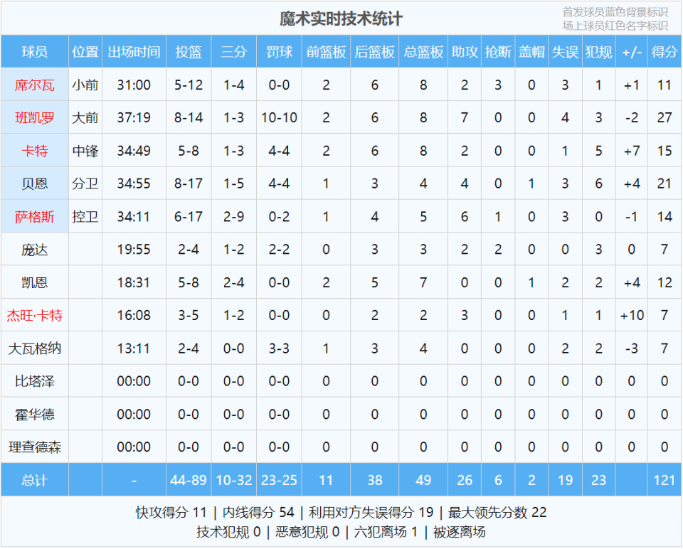 最近8场比赛,班凯罗场均能砍下27.1分9.2篮板5.2助攻,投篮命中率56%。赛季之初,班凯罗的糟糕状态招致不少批评。如今在冲刺季后赛的关键阶段,他终于找回手感。贝恩此役17中8拿到21分4板4助6犯规,三分球只有5中1。