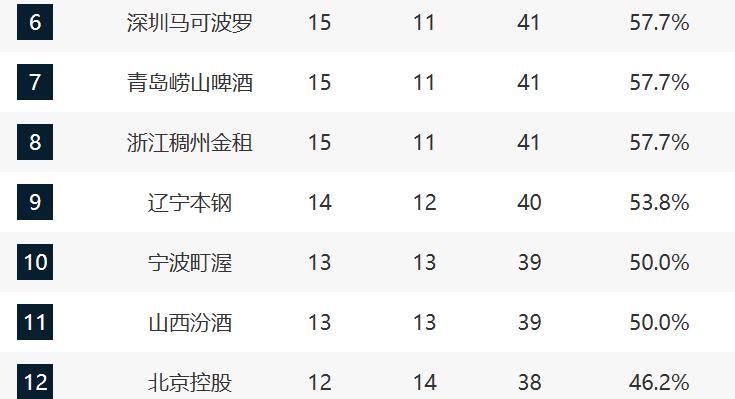 6-9分别是深圳、青岛、浙江和辽宁。在这几支球队中,青岛现在是遭遇两连败了,这轮他们惜败上海,属实可惜。至于深圳1分险胜广州,结束三连败止住颓势。浙江和辽宁最近的状态都非常好,特别是乌戈上任之后,辽宁攻守都被盘活了,多位本土球员的状态都拉满了,现在五连胜了。