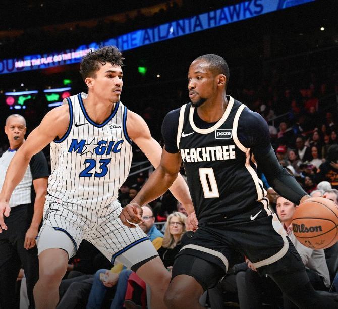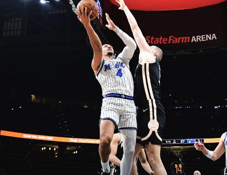 这一个比赛日,老鹰迎来了一场硬仗,坐镇主场州立农业球馆,对阵奥兰多魔术,本场比赛鹰王杰伦约翰逊在攻防两端完爆状元郎班凯罗,在他的率领下,老鹰早早就建立起了两位数的领先,最终以124-112三杀魔术,豪取十连胜。