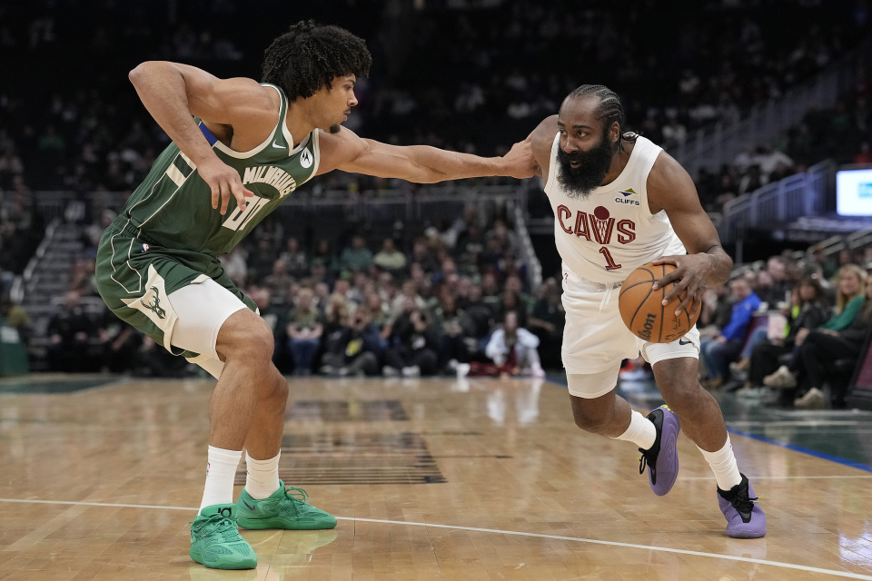 哈登27+5+6回暖!骑士拒雄鹿逆转 莫布利27+15米切尔14中4