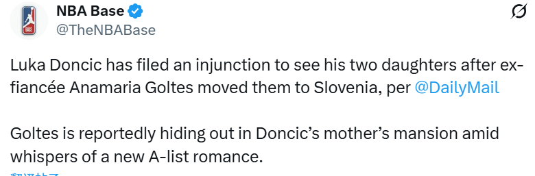 东契奇分手后续:要求探视两个女儿 传闻前未婚妻已经发展新恋情