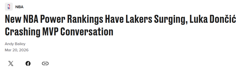 NBA实力榜单更新!勇士跌至21火箭11名 湖人飙升第4马刺又高居第一