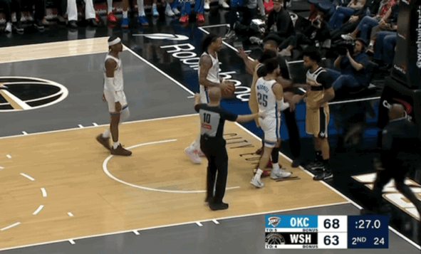 在半场比赛结束之际,杰林-威廉姆斯和尚帕涅爆发冲突,阿贾伊-米切尔和卡森-华莱士为杰林出头加入战场,场边瞬间乱作一团。经过多方人员拉开涉事球员,事件才没有进一步升级恶化。后续裁判经过回放后将4名涉事球员驱逐离场,这一波风波才得以平息。