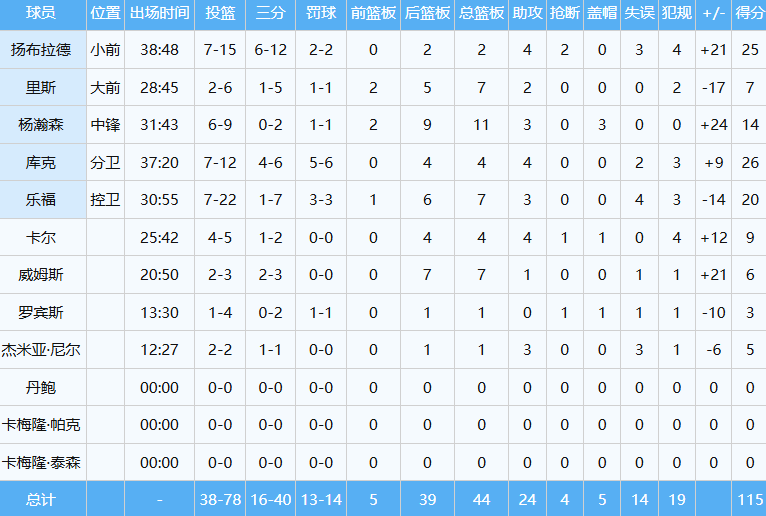 本场杨瀚森延续了超高的进攻效率,首发出战约32分钟,投篮9中6,命中率达到约67%,砍下14分11板两双数据外加3助3帽,没有出现一次失误一次犯规,正负值+24全场最高。