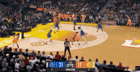哈登增加个人持球冲筐,他一人连得8分并且造成对手三分投射犯规,帮助骑士紧咬比分。双方在首节比赛展开精彩的互攻大战,骑士被对手连续三分命中,在首节比赛落后魔术7分。