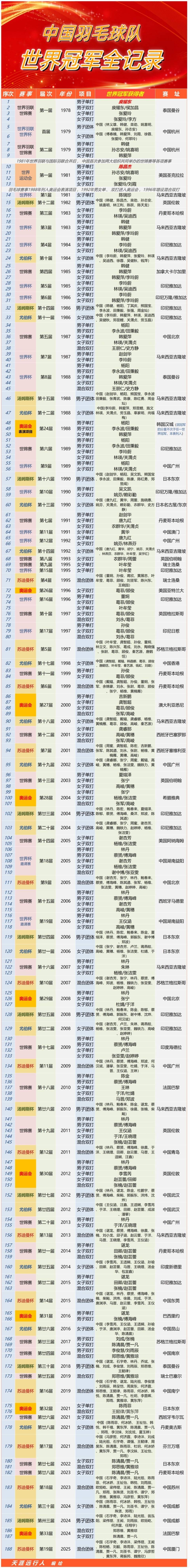 1977-2023世界羽毛球锦标赛中国队历届战绩全记录