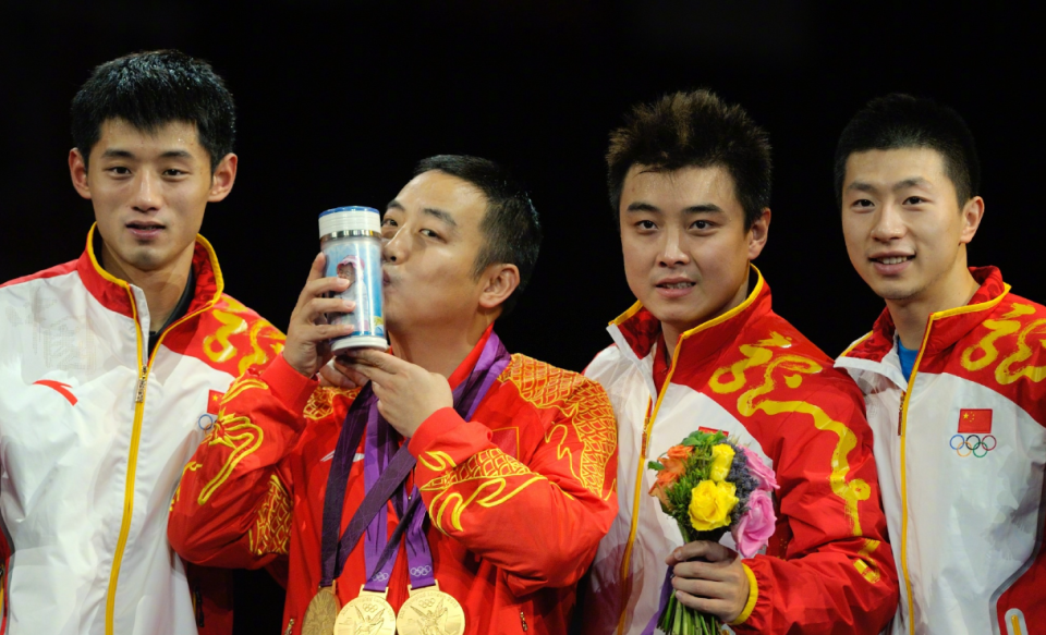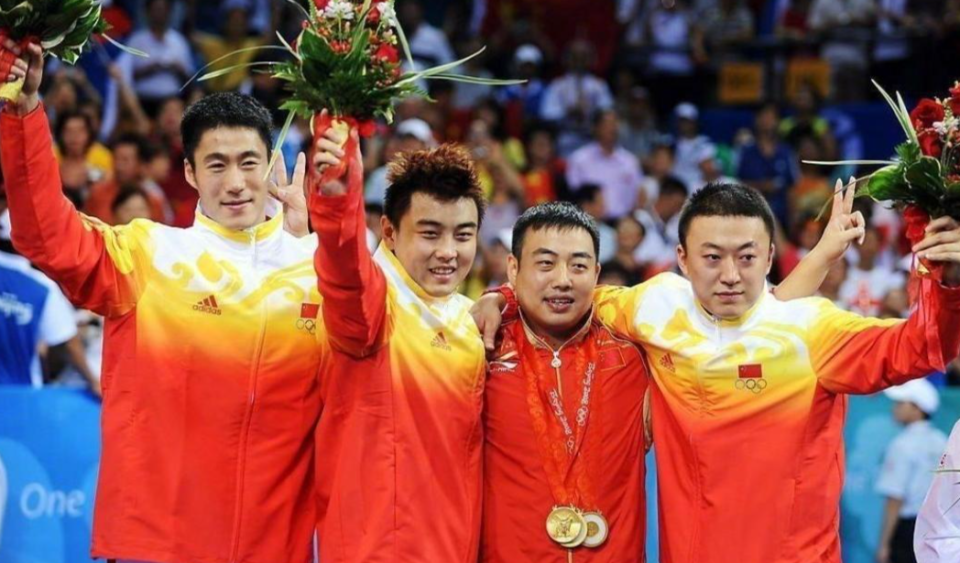 北京奥运会取得男团冠军之后,刘国梁在全世界关注的镜头前亲吻戒指,同时和二王一马相拥而泣。