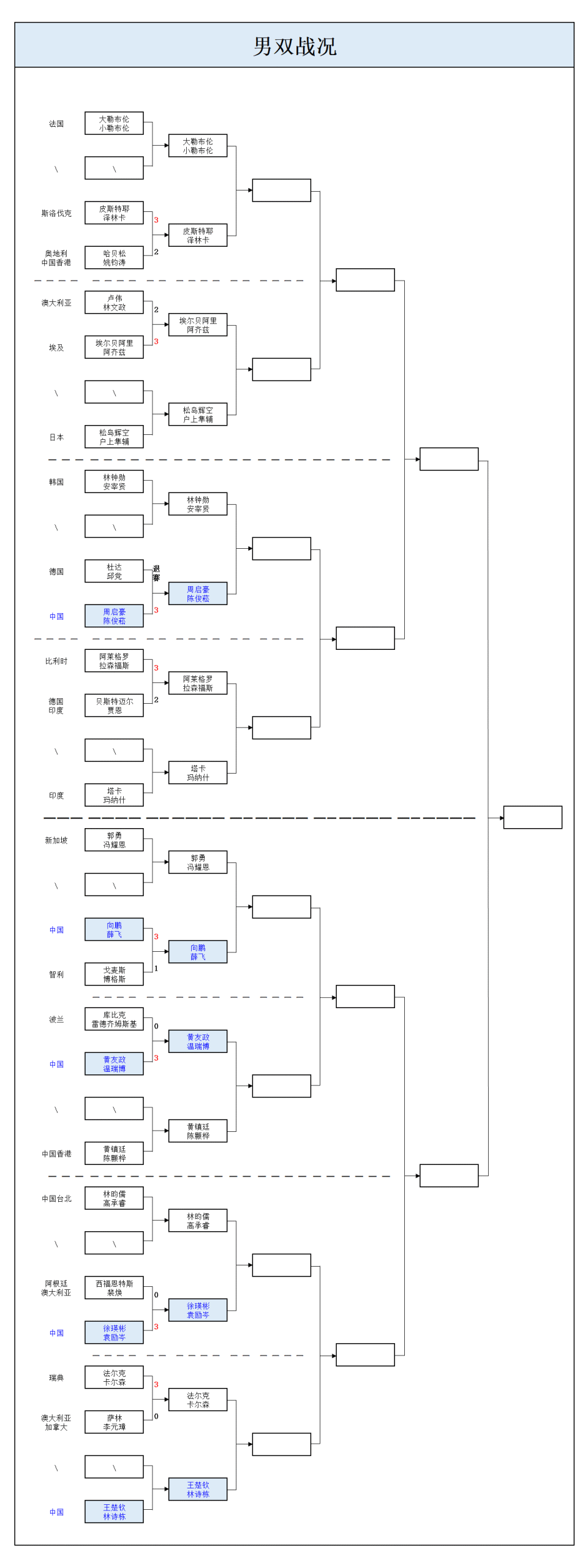 19:10,陈垣宇VS小勒布伦(法国)、黄友政/温瑞博VS黄镇廷/陈颢桦(中国香港);