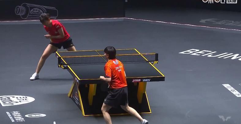 朱雨玲一直进攻陈幸同的中间位置,取得了不错的效果,比分来到7-3!陈幸同打得非常顽强,放慢了自己的节奏,逐渐将比分追至7平!