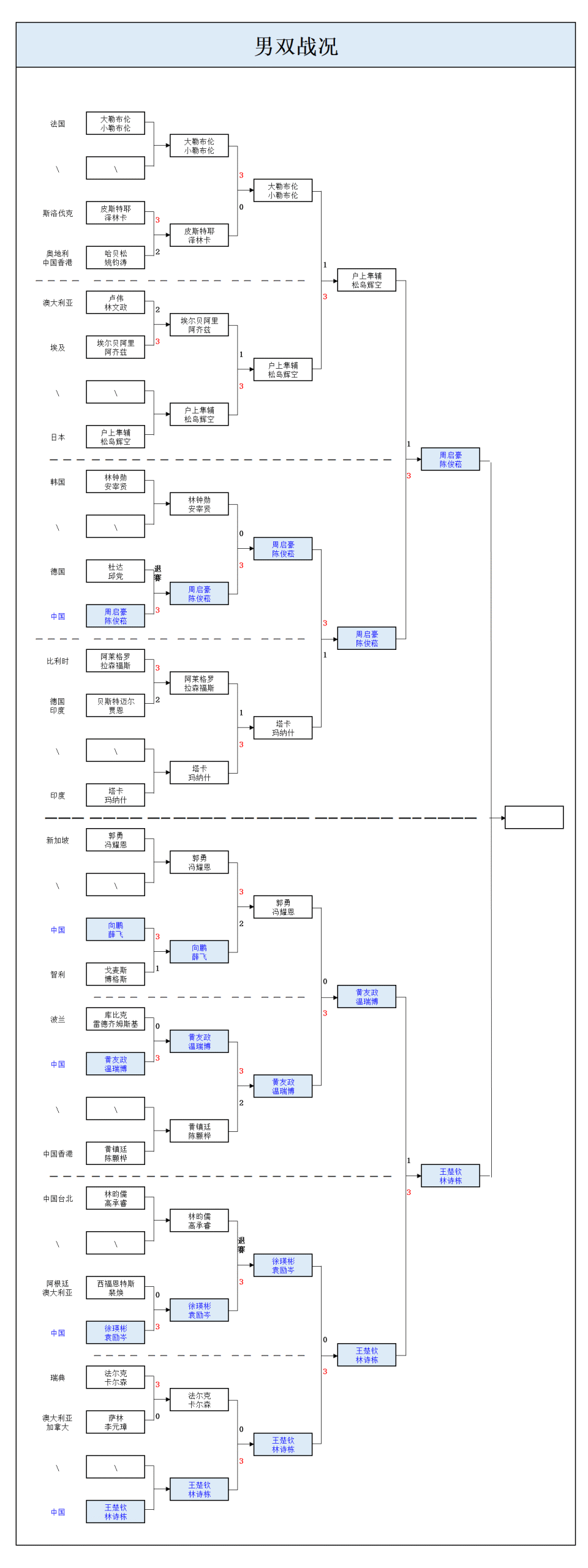 18:30男双决赛:王楚钦/林诗栋VS周启豪/陈俊菘。