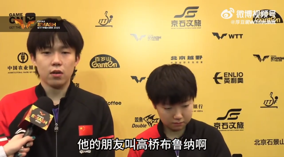 王楚钦似乎忘了雨果搭档的名字,“他的朋友高桥-布鲁娜。”