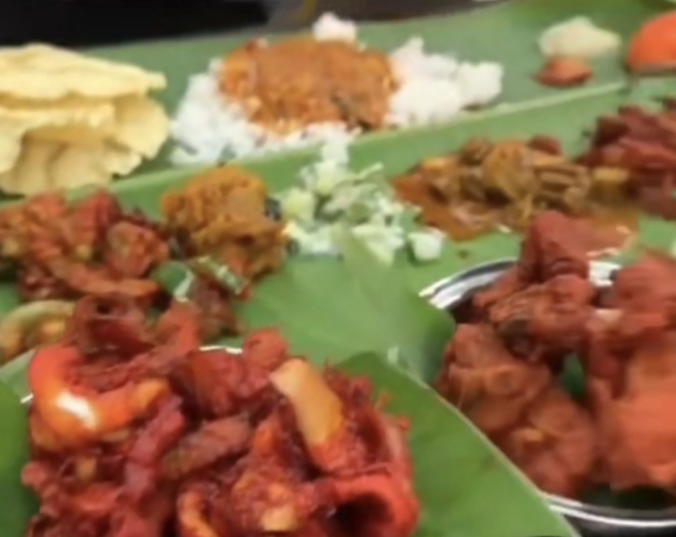 还有一些咖喱牛肉、咖喱块、饼都这么放在餐垫上,只有炸鸡之类的放在盘子里,真是“干净又卫生”。