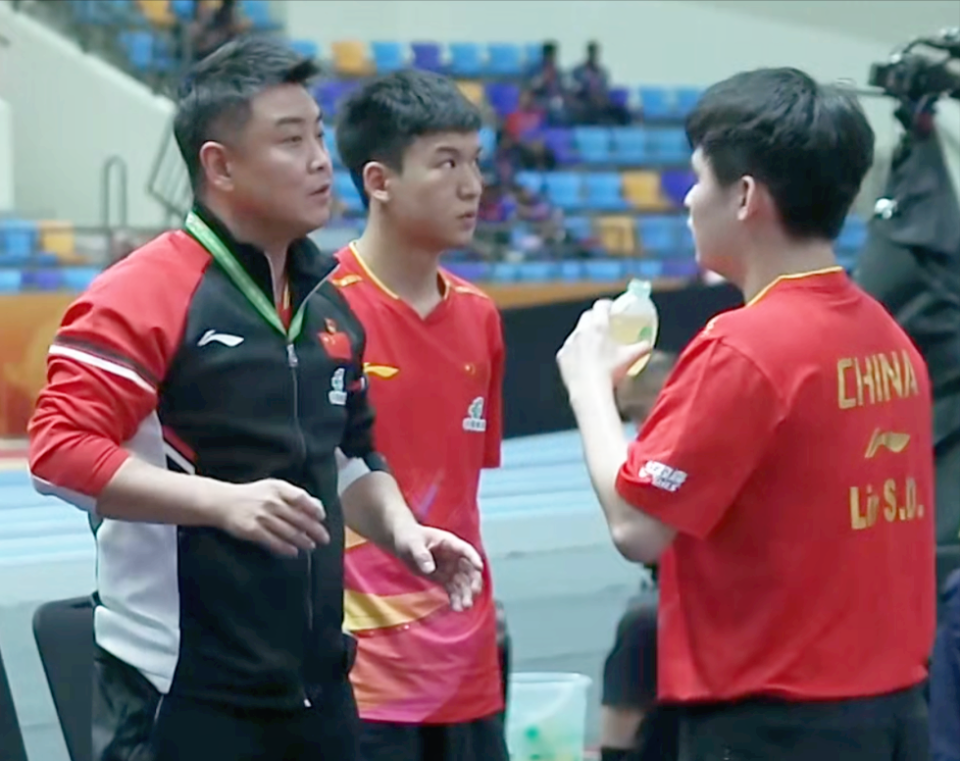 第三局林诗栋开始加强对法拉吉中间位的压制,令其难以从容侧身打出高质量进攻,很快便取得了7-2领先的优势,但随后回球落点被法拉吉精准预判反拉得手,很快战至8-7只差1分,国乒男队主教练王皓当即中断比赛用掉暂停机会。