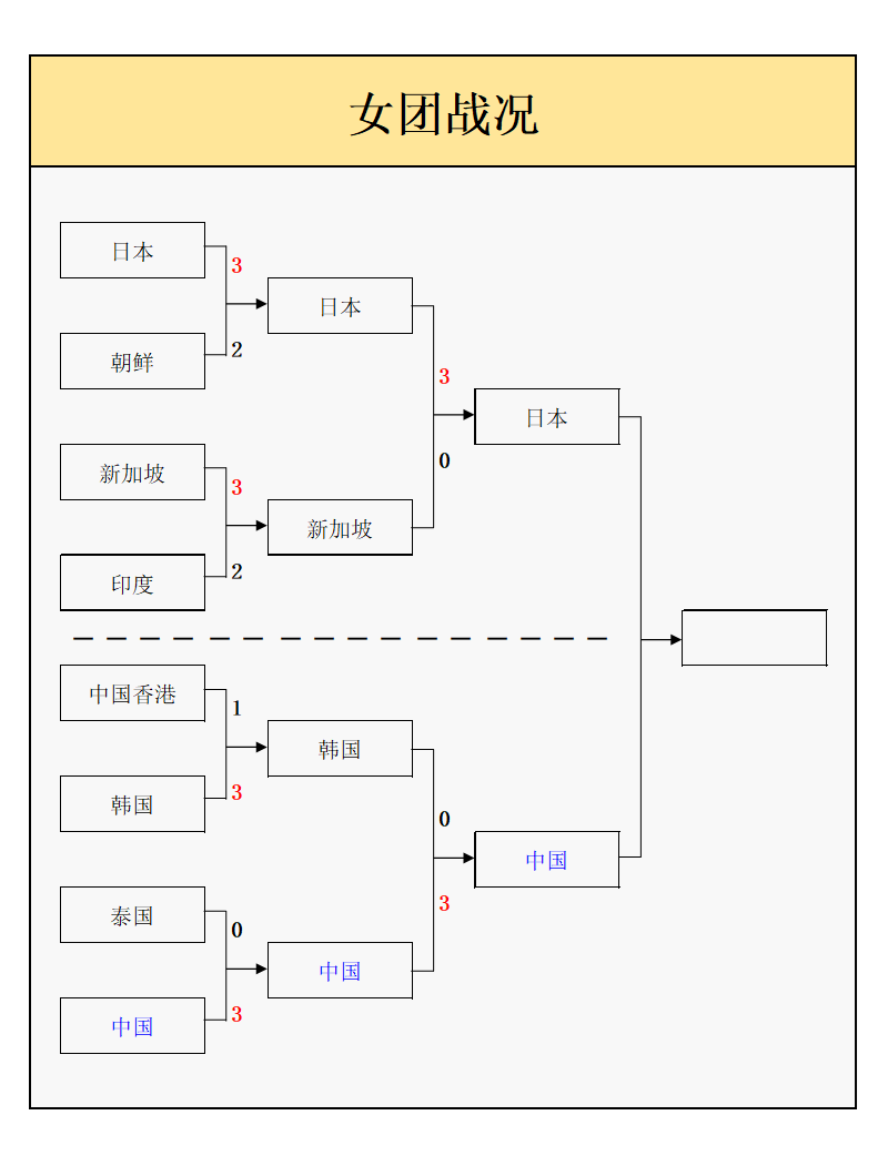 日本3-0新加坡:张本美和3-1舒麟茜、桥本帆乃香3-0曾尖、大藤沙月3-0黎明映。