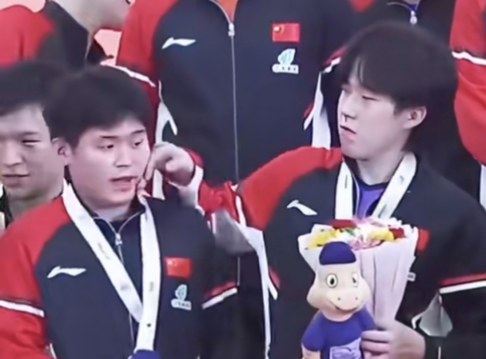 这届亚锦赛的吉祥物也让人看着想要吐槽,国乒队员们每人一个。王楚钦和林诗栋站在一起领奖,他突然用右手搓了搓小石头的左脸,后者没有想到,哎呀一声。