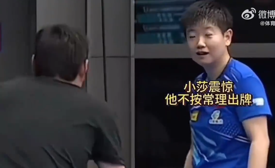 而在训练中,邱贻可不按常理出牌,也是让莎莎一脸震惊的样子。