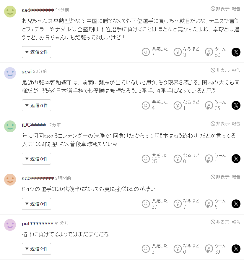 不得不说,张本智和的每一次输球,都会引发中国和日本网络上的热议。