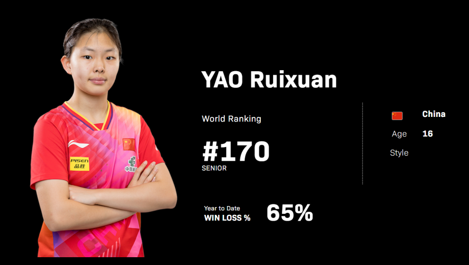 目前年仅16岁的姚睿轩在成年组的世界排名都是170,可能再过1-2年大家就可以看到她正式出战成年赛,她的成年组世界排名也会越来越高。