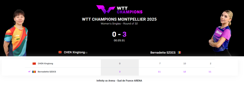 女单前十种子球员中,目前同样有4人出局,分别是头号种子陈幸同、二号种子蒯曼、7号种子伊藤美诚、8号种子大藤大月,至此在两个比赛日过后,男、女单一共有8位种子球员出局,不得不说本次WTT蒙彼利埃冠军赛,真的是冷门不断......
