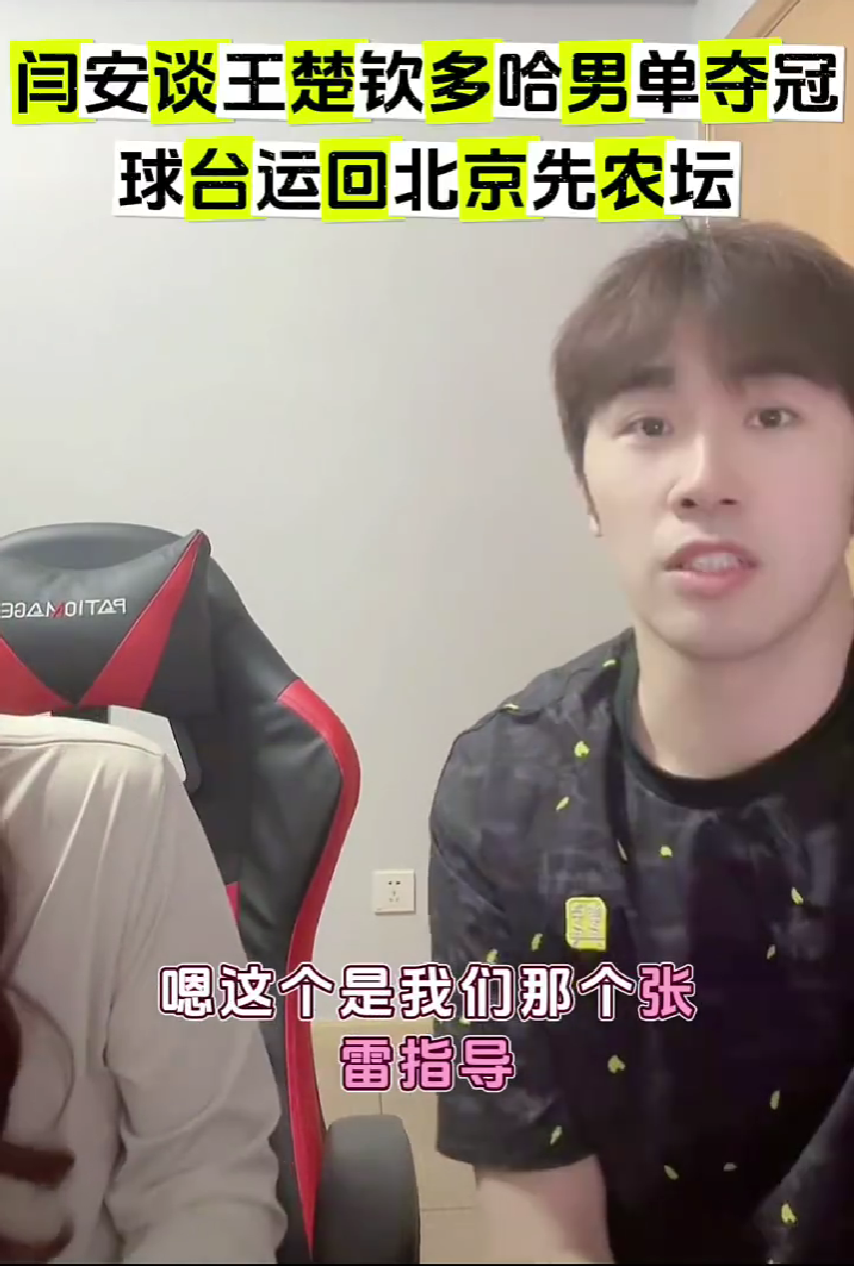 10月21日,国乒队员闫安在直播中透露,“我回北京队,看到这不是多哈球台吗,那是我们北京队专门给弄回来的。这是我们张雷指导找他们的人专门给买回来的。你知道,这张台子在外面卖得一万多块钱一张。”