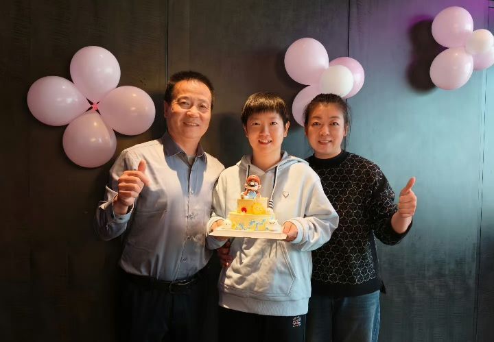幸福!孙颖莎与父母共同庆生,闺蜜团大合照曝光:吃长寿面+蛋糕