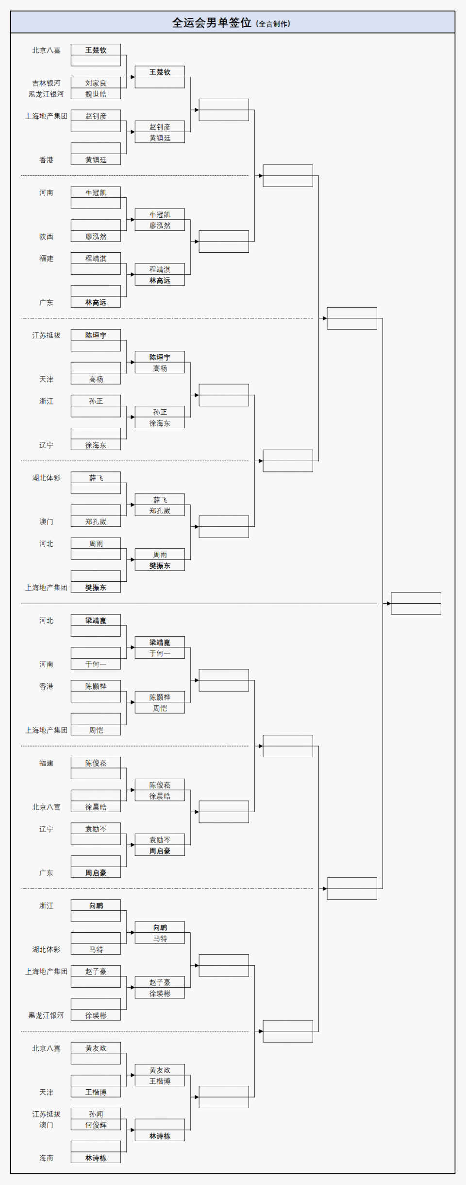 全运会乒乓球:男单签位公布!樊振东、王楚钦同区,无缘决赛相遇