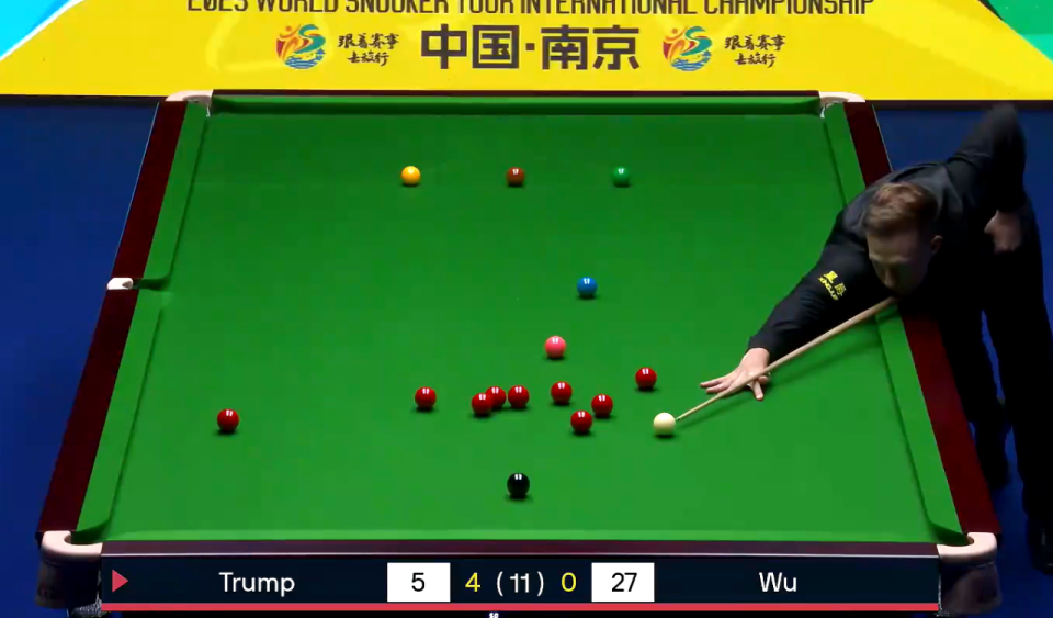 同时段,吴宜泽和世界第一特鲁姆普的比赛,上演好戏。前四局,吴宜泽上来给自己挖了一个0-4的大坑。