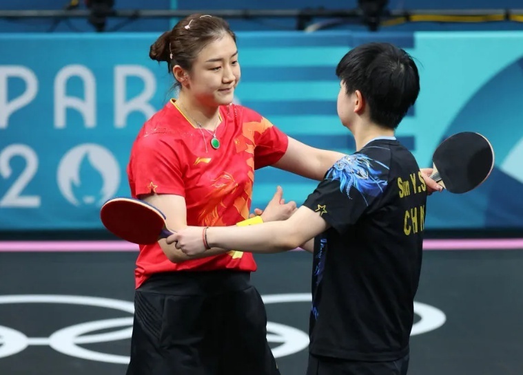 南巴黎竞技场的四号馆,巴黎奥运会女单决赛,孙颖莎11∶4先胜第一局。陈梦在失掉首局的情况下苦战六局,最终以4∶2战胜孙颖莎夺冠,成为继邓亚萍和张怡宁之后第三位成功卫冕奥运女单冠军的运动员。
