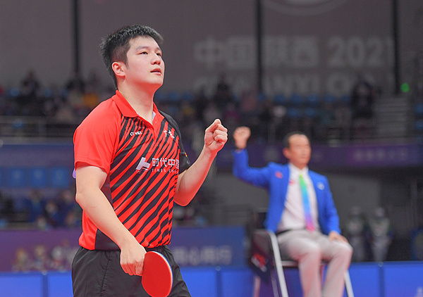 从2013年首次参赛以来,樊振东在此前参加的三届全运会中收获5金2银2铜,是荣获全运会金牌最多的现役乒乓球选手。在2013年和2017年决赛均负于马龙后,樊振东终于在2021年全运会男单决赛中4比0完胜刘丁硕,斩获个人首枚男单金牌。