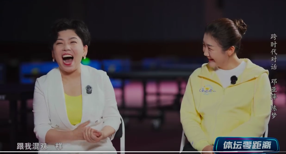 谈笑间,邓亚萍无意间“戳”到了陈梦职业生涯痛点,陈梦“委屈”回应,邓亚萍幽默附和