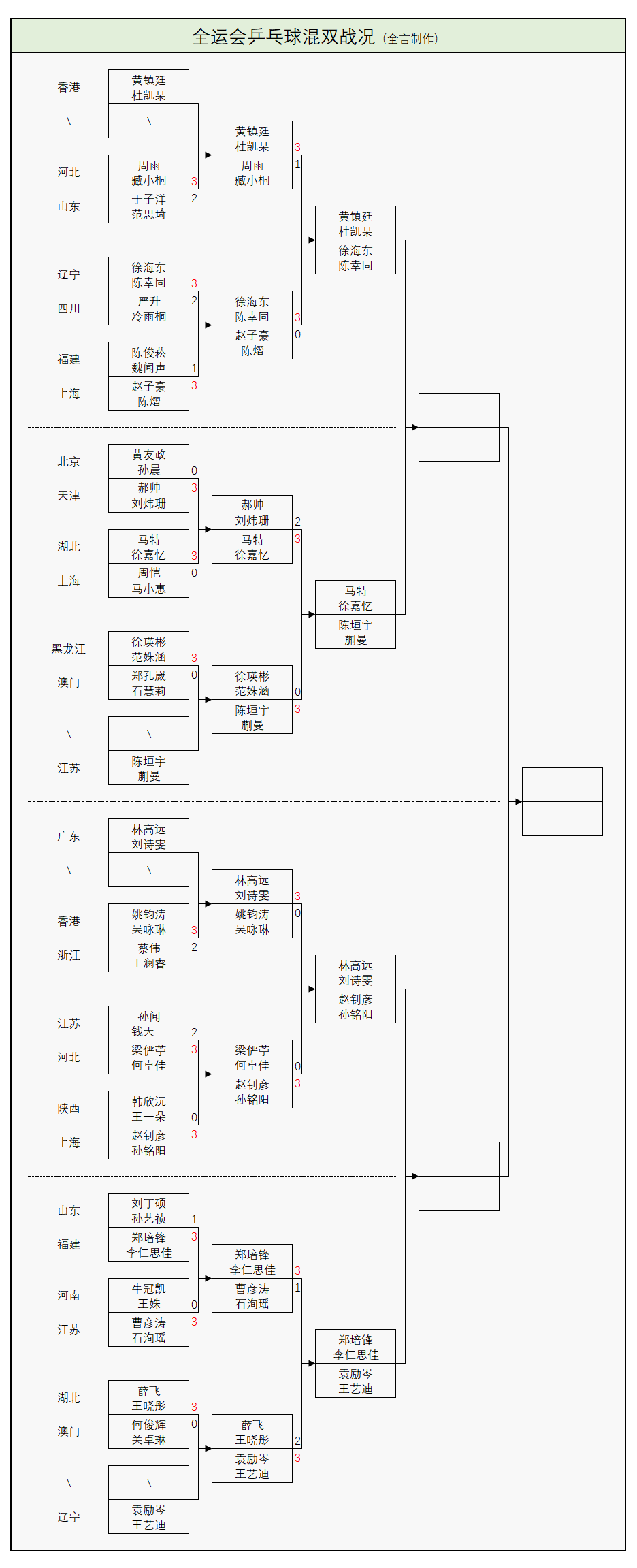 林高远/刘诗雯(广东)VS赵钊彦/孙铭阳(上海);