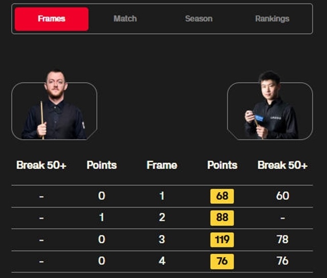 最终,这场世界前十(赵心童在国锦赛后已经升至第10)之间的强强对决,以马克艾伦的惨败结束,全场四局打下来,三局0分,只在第二局拿到1分,被赵心童轰出惨案!