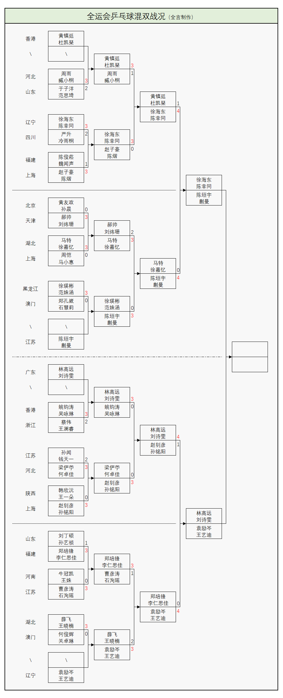 全运会乒乓11月13日赛程:12位世界冠军冲四强!混双诞生决赛名单