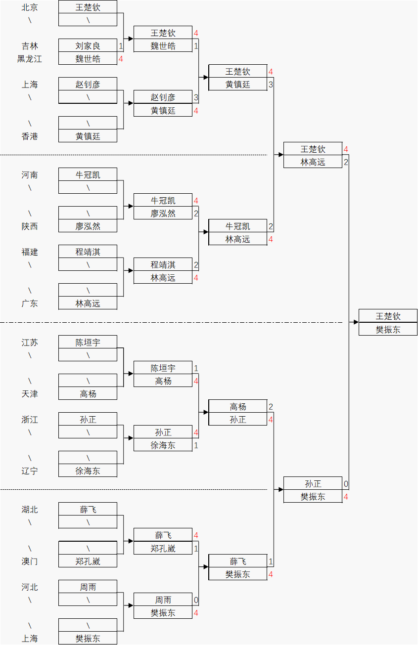 在此之前,两位运动员曾在国内外比赛中多次交手,互有胜负,实力可以说是在伯仲之间,其中樊振东虽然已有一年多时间没有参加国家队训练,但仍然活跃于国内外联赛等舞台,状态保持得非常不错,本次比赛连过三轮、仅输1局,而王楚钦的晋级之路颇为艰辛,其中第二轮4-3才拿下香港的黄镇廷、第三轮4-2击败广东的林高远,再战樊振东压力不小。