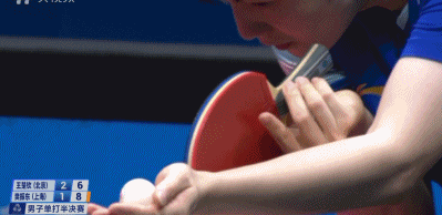 但是王楚钦在发球环节给樊振东极大压力——1比3,王楚钦发了一个台角保护的半出台,樊振东一吊,被早等在位置的王楚钦一个倒地爆冲。