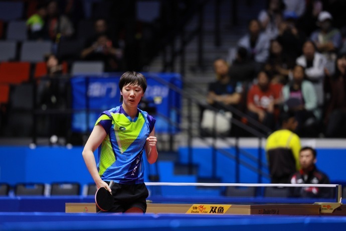 第四局王曼昱8-5领先,连丢4分,最后还是沉着应战,主动台内挑打,都是靠前三板的主动上手进攻拿下。最终,王曼昱以4-0击败陈梦。