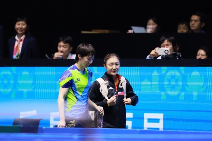 王曼昱4-0横扫陈梦晋级决赛后,两人全程有说有笑,从握手时的低声交谈,到一起离场时的热聊,完全看不出刚经历过激烈对决。