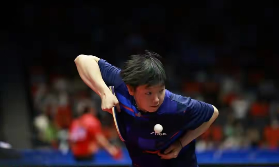 坚持前三板发动,孙颖莎落点灵活,王曼昱靠相持旋转反击。