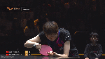 王曼昱第一局中段就发了反手发球;这次孙颖莎反手直接上去拧,得分了。