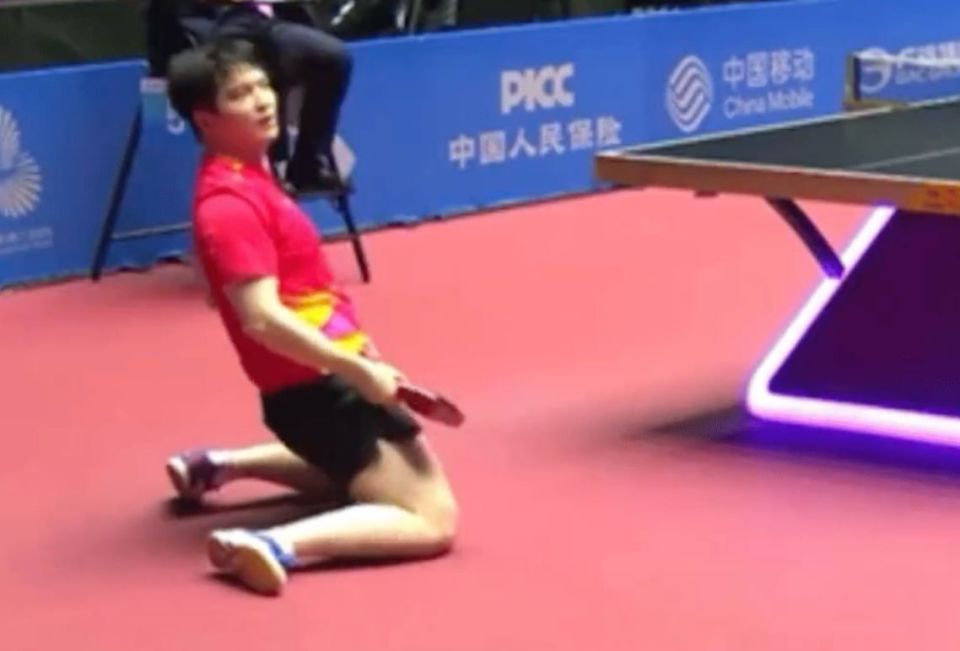几个男人能做到?28岁樊振东不慎双膝跪地 仅靠核心力量原地弹起