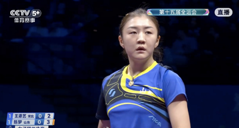 第三盘单打比赛,陈梦以 3-0(11-8、11-7、11-6)轻取王添艺,山东队大比分再次 2-1 领先。
