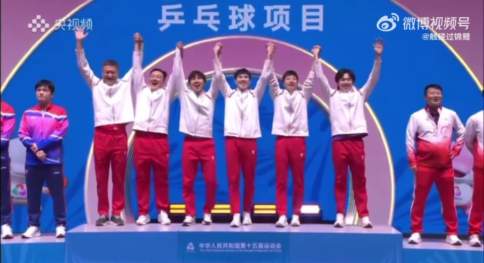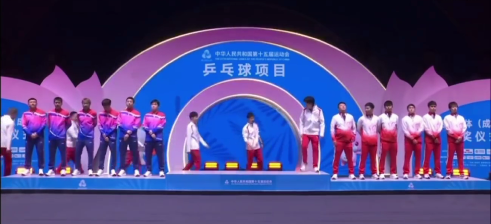 11月21日消息,11月20日晚上结束的全运会乒乓球男团决赛,马龙、王楚钦、黄友政的北京队以 3-1 战胜樊振东、许昕、周恺的上海队,时隔32年重夺全运会男团冠军。赛后颁奖仪式发生了有趣的一幕,王楚钦率先登上了领奖台,马龙瞪他一眼,大头赶紧下台等着大家一起牵手登台。