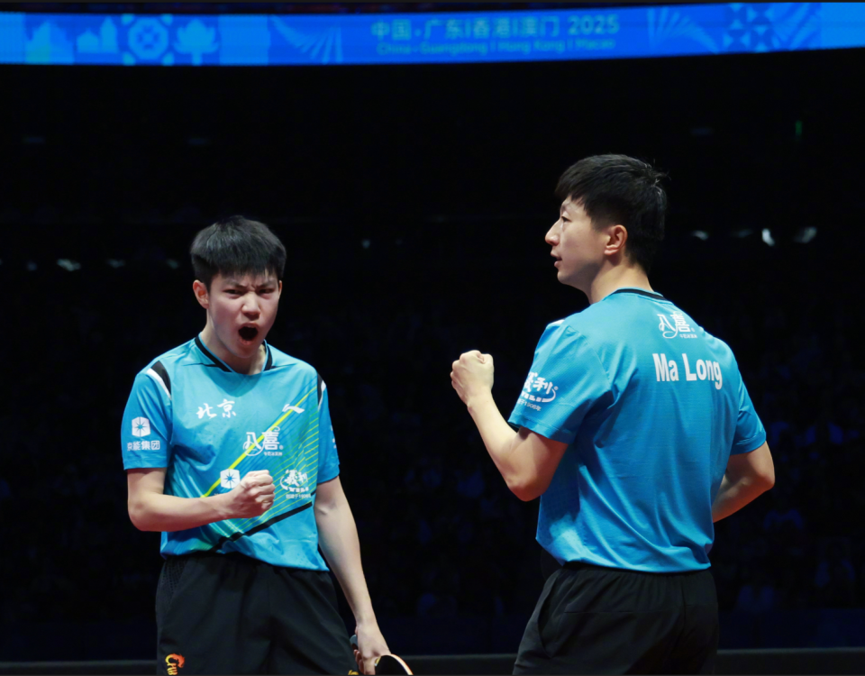 决赛第一盘男双比赛:黄友政/马龙3-1击败许昕/周恺 【11-9,5-11,11-4,11-7】
