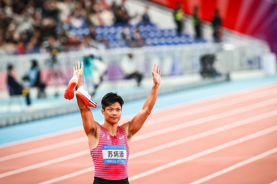 36岁的苏炳添已经是暨南大学体育学院的院长,全运会也是这位“亚洲百米飞人”的告别战。在家乡观众面前,苏炳添很想用一枚奖牌甚至金牌结束自己的职业生涯。可惜,他和广东队只获得了男子4X100米接力第四名,与奖牌擦肩而过。然而,这并不影响苏炳添是一位伟大的田径运动员,9秒83的亚洲纪录将会一直闪耀。