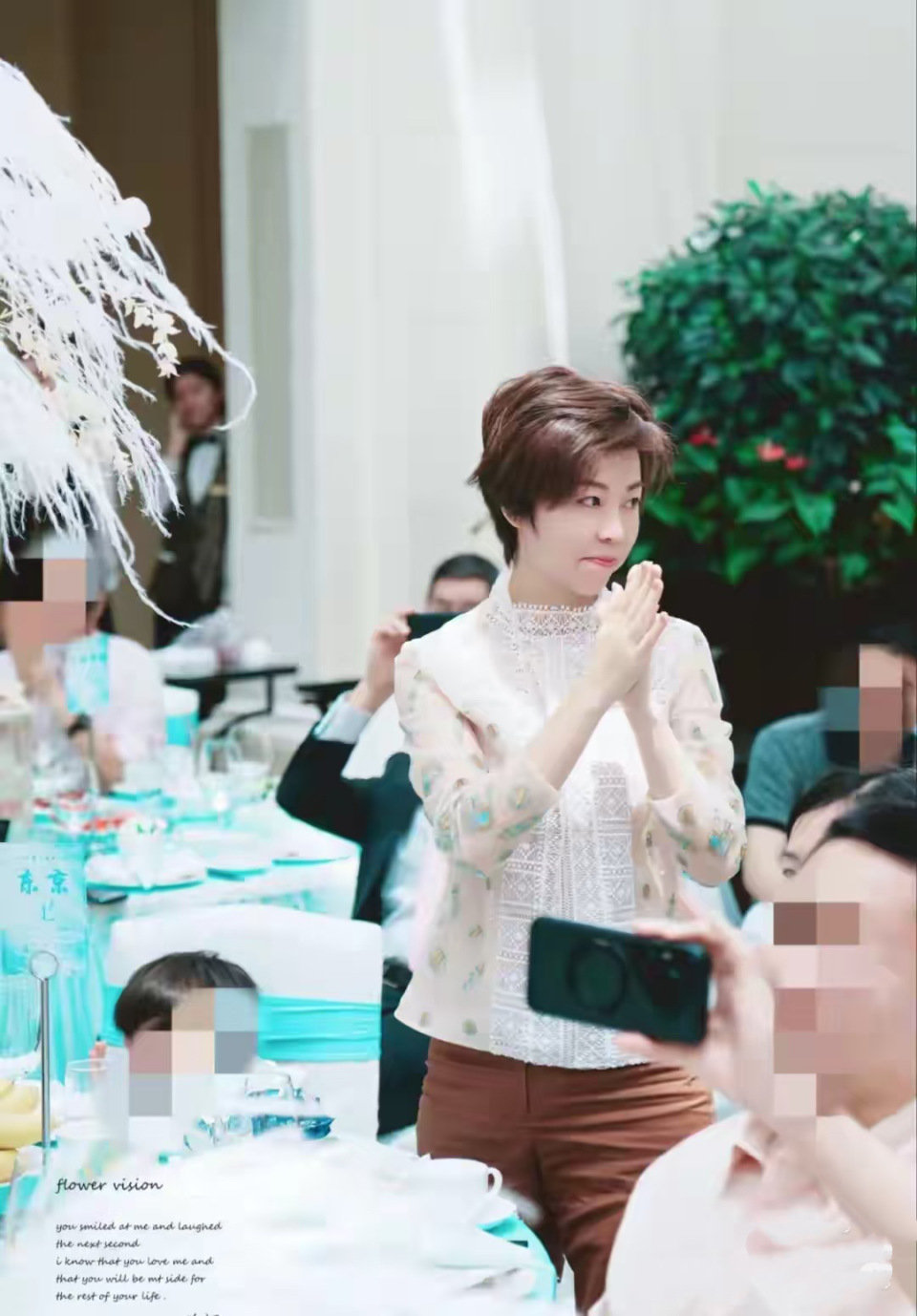 其实张怡宁也懂得在不同场合搭配不同的服装,出席婚礼的时候、她会罕见的穿上蕾丝上衣,展现出自己温柔的一面。