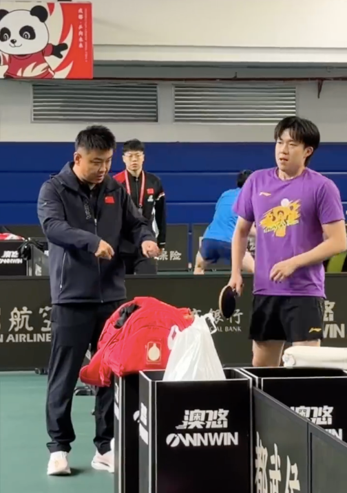 国乒中午抵达成都,下午就抵达训练馆进行首次训练。在王楚钦训练的时候,男队主教练王皓双手比划着,对他进行指导,王楚钦也连连点头进行回应,随后继续投入到训练中。由于混团的特殊赛制,不知道本届比赛王楚钦更多的是承担混双任务还是男单任务。在此前结束的全运会中受到腰伤影响的梁靖崑不知道恢复的如何了,他按照自己的节奏进行赛前训练。在上届比赛中每场比赛都获得出场机会的林诗栋在本届比赛不知道会出场几次,去年他更多的是出战男单。首次参加混团世界杯的徐瑛彬是否会获得出场机会呢?