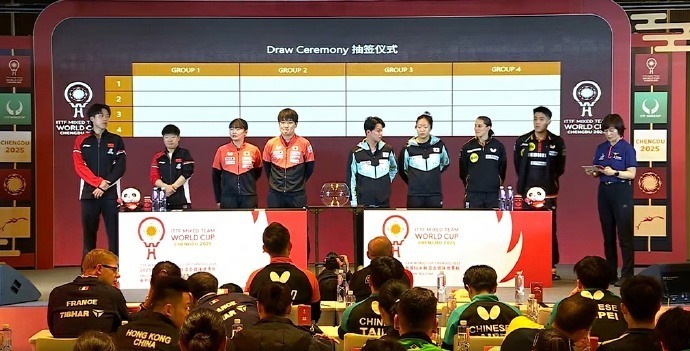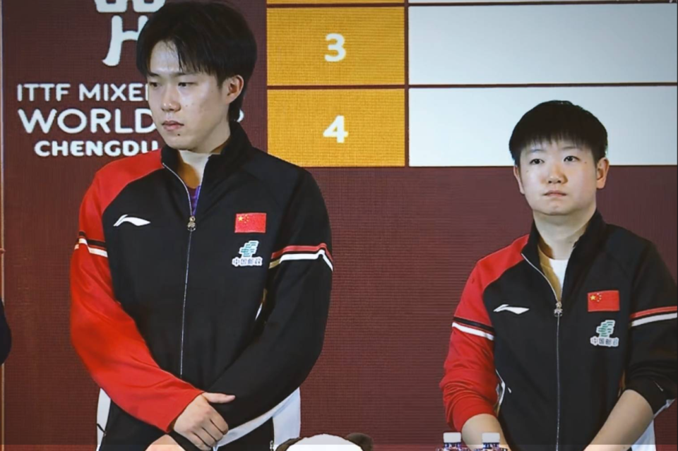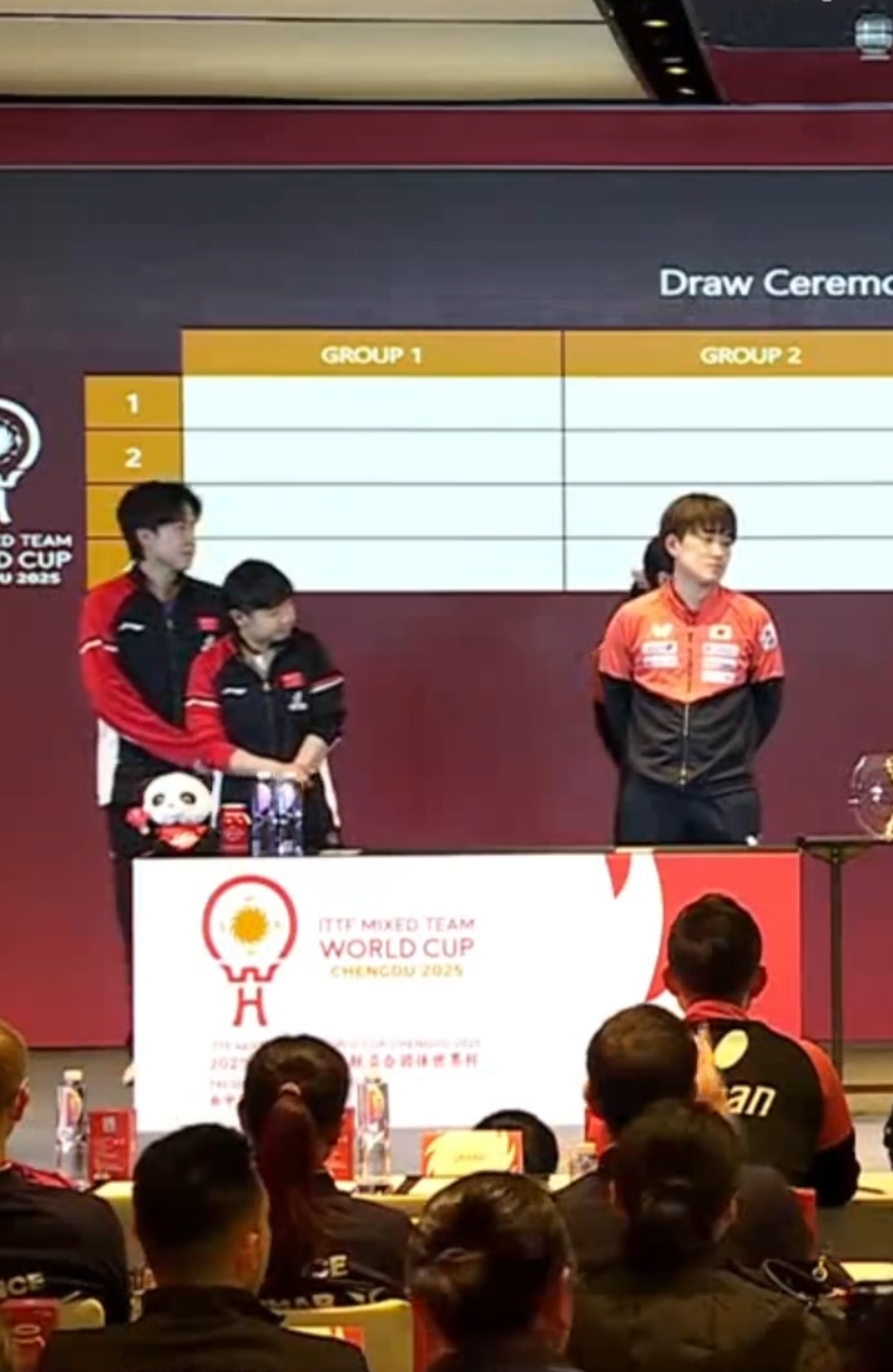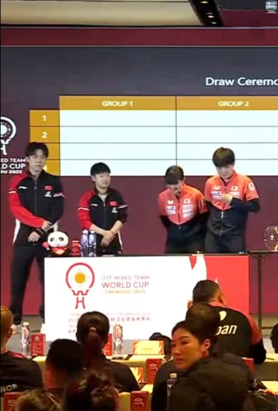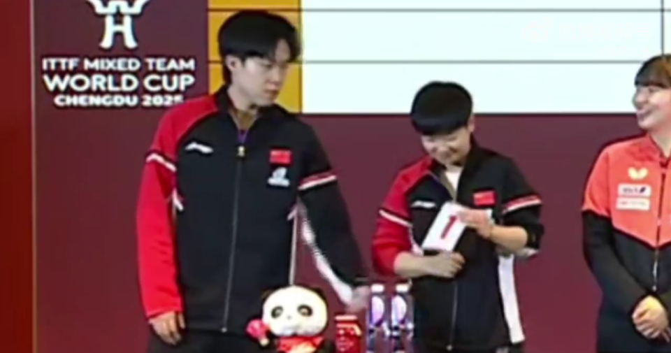 在混合团体世界杯的抽签仪式上,孙颖莎和王楚钦代表国乒先后上台,